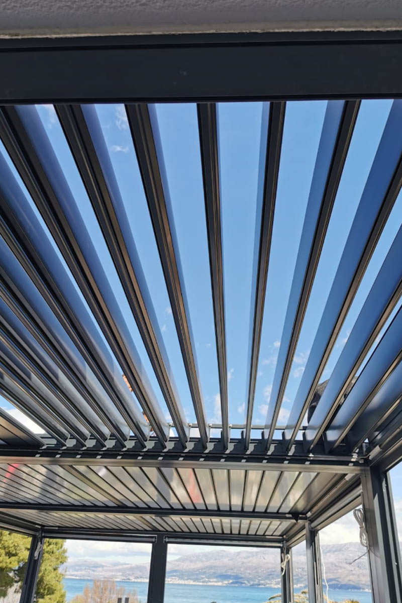 Bioklimatska pergola je novi sustav zasjenjivanja, nebitno da li je zima ili ljeto, prednost bioklimatskih pergola jeste što pružaju kvalitetan i miran boravak na otvorenom bez obzira na godišnje doba. Sofisticiranog dizajna i snažne, izdržljive konstrukcije, odlično rješenje za povećanje životnog prostora, ugostiteljske, hotelske terase ili vrtova. Pokretne tende sa LED rasvjetom na daljinsko upravljanje sa aluminijskim krovnim panelima koji onemogućavaju prodor vode ispod krova.